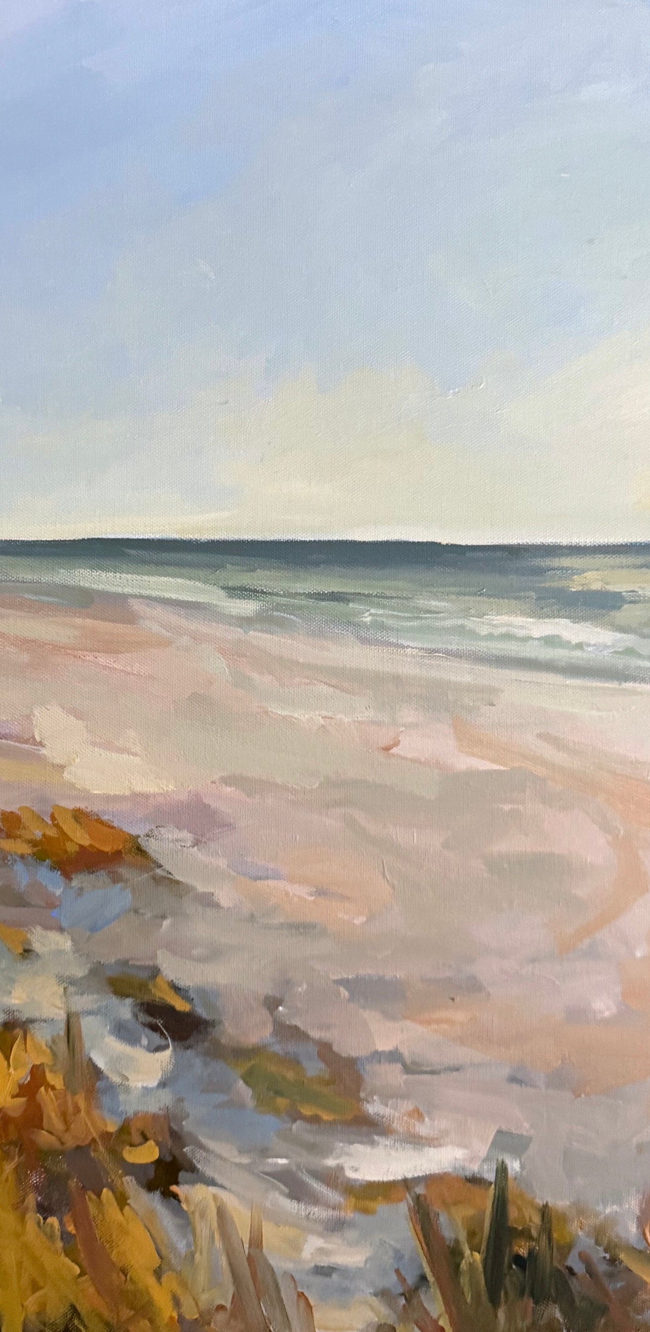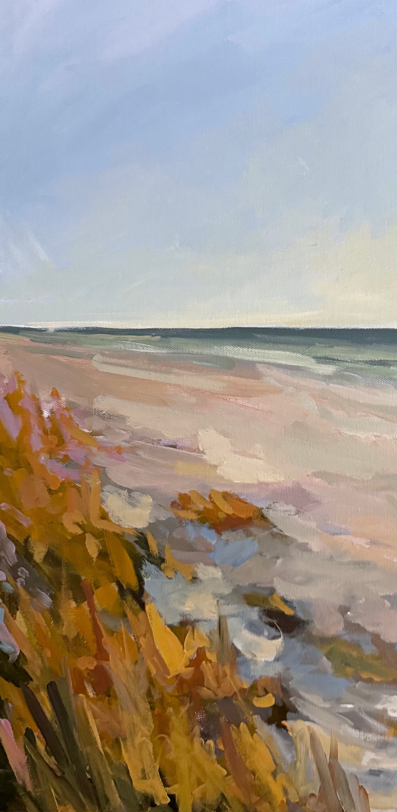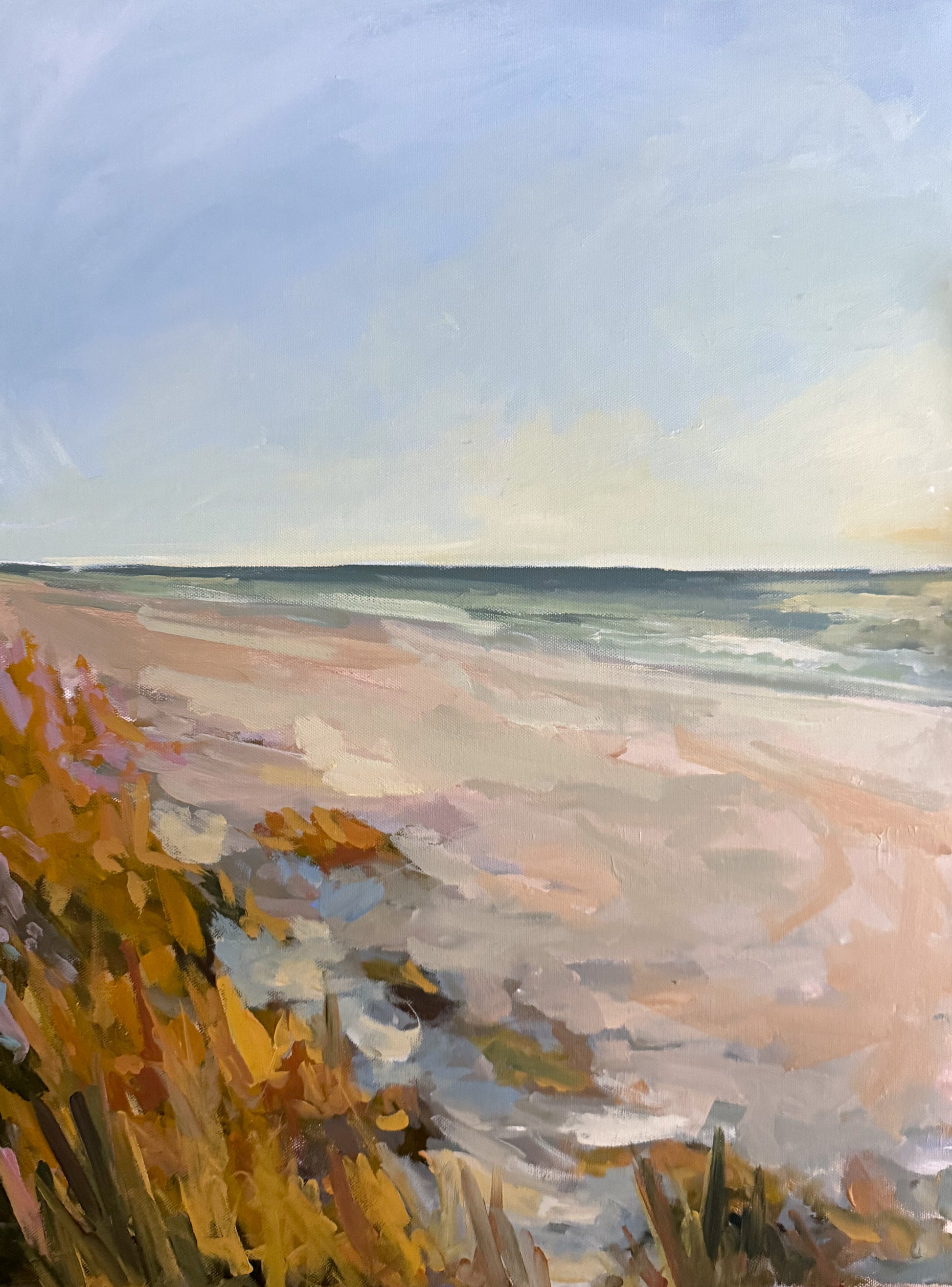 I created this collection to showcase my love of the beach. Whether it be a winding pathway covered in beach grass, watching the surfers tackle their next wave, or watching the palmetto trees swaying from the breeze- it's all home to me. And I hope these paintings bring you home, too.